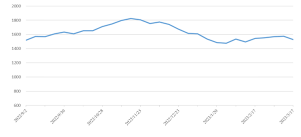 内贸海运需求保持稳定,本期(2023年3月18日至3月24日)中国内贸集装箱运价指数小幅回落